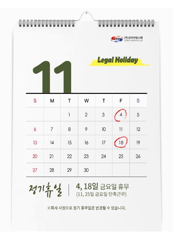 코리아텅스텐 2022년 11월 정기휴무 안내