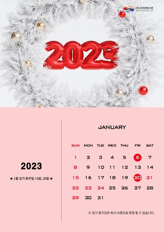 코리아텅스텐 2023년 1월 정기휴무 및 설연휴 안내