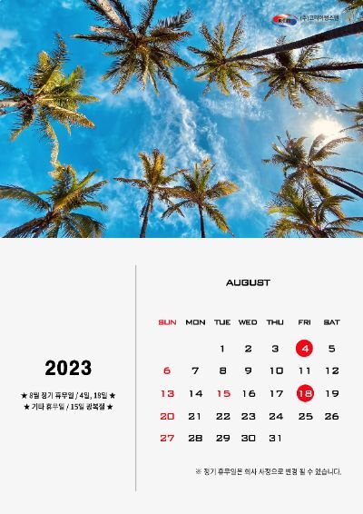 코리아텅스텐 2023년 8월 정기휴무 안내