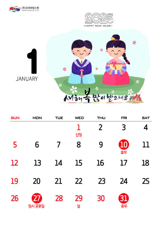 1월 코리아텅스텐 휴무일 안내 드립니다.