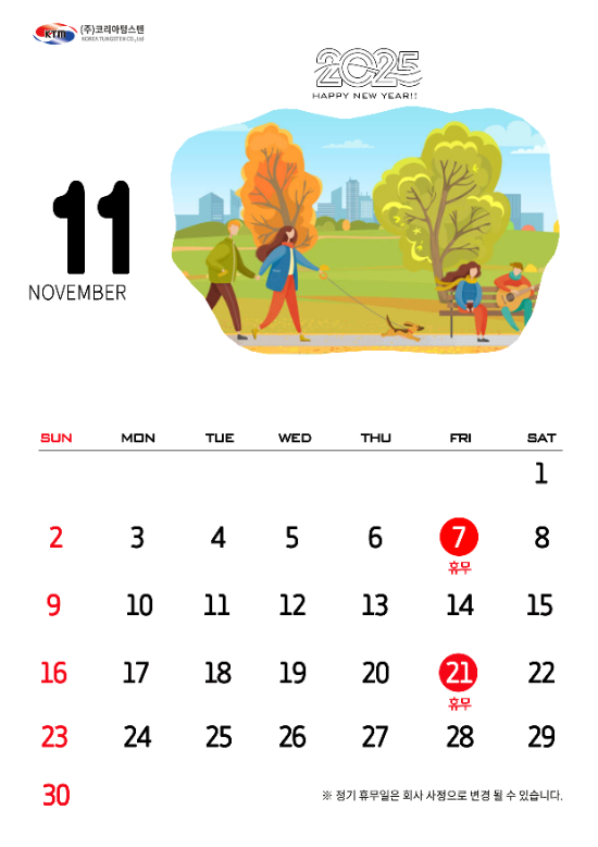 11월 코리아텅스텐 휴무일 안내 드립니다.