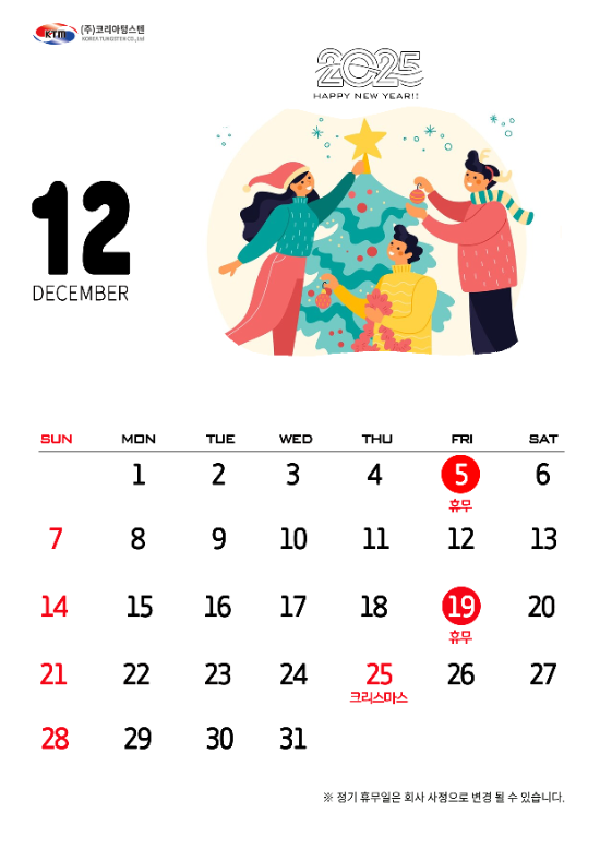 코리아텅스텐 2025년 12월 휴무 안내